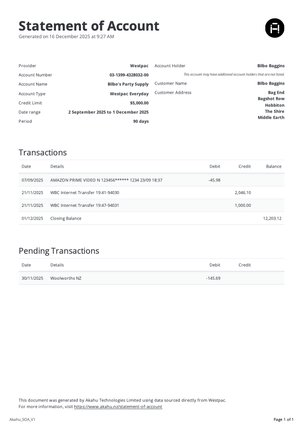 This page describes how Akahu generates PDF statements for loan applications using open banking.